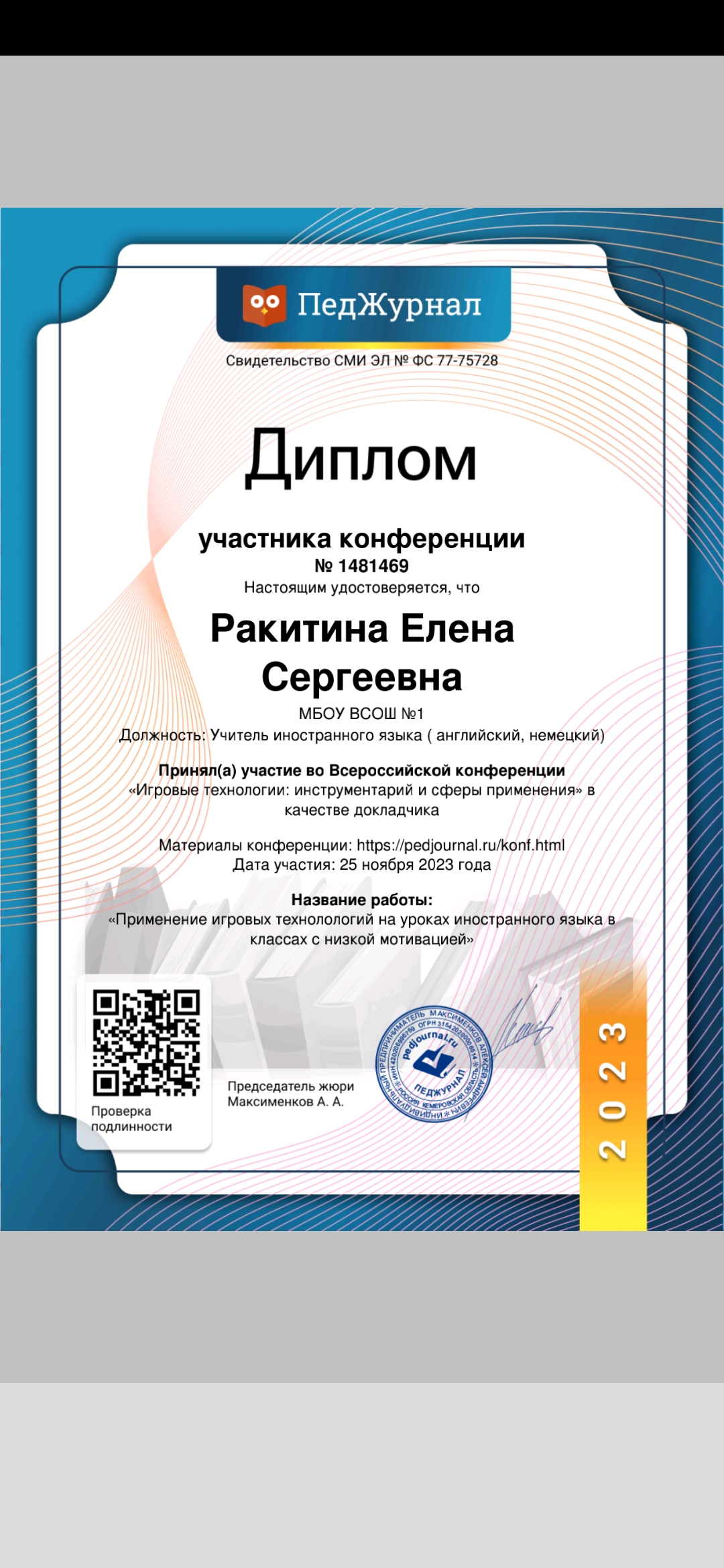 Международная конференция "Роль игровых технологий на уроках английского в 5-9 классах"