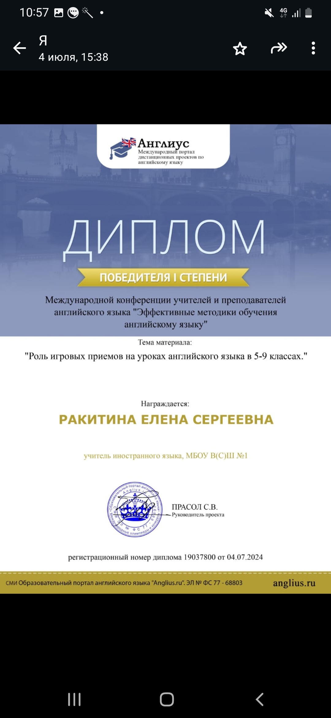 Международный конкурс учителей " Роль компьютерных и интерактивных игр на уроках английского языка"