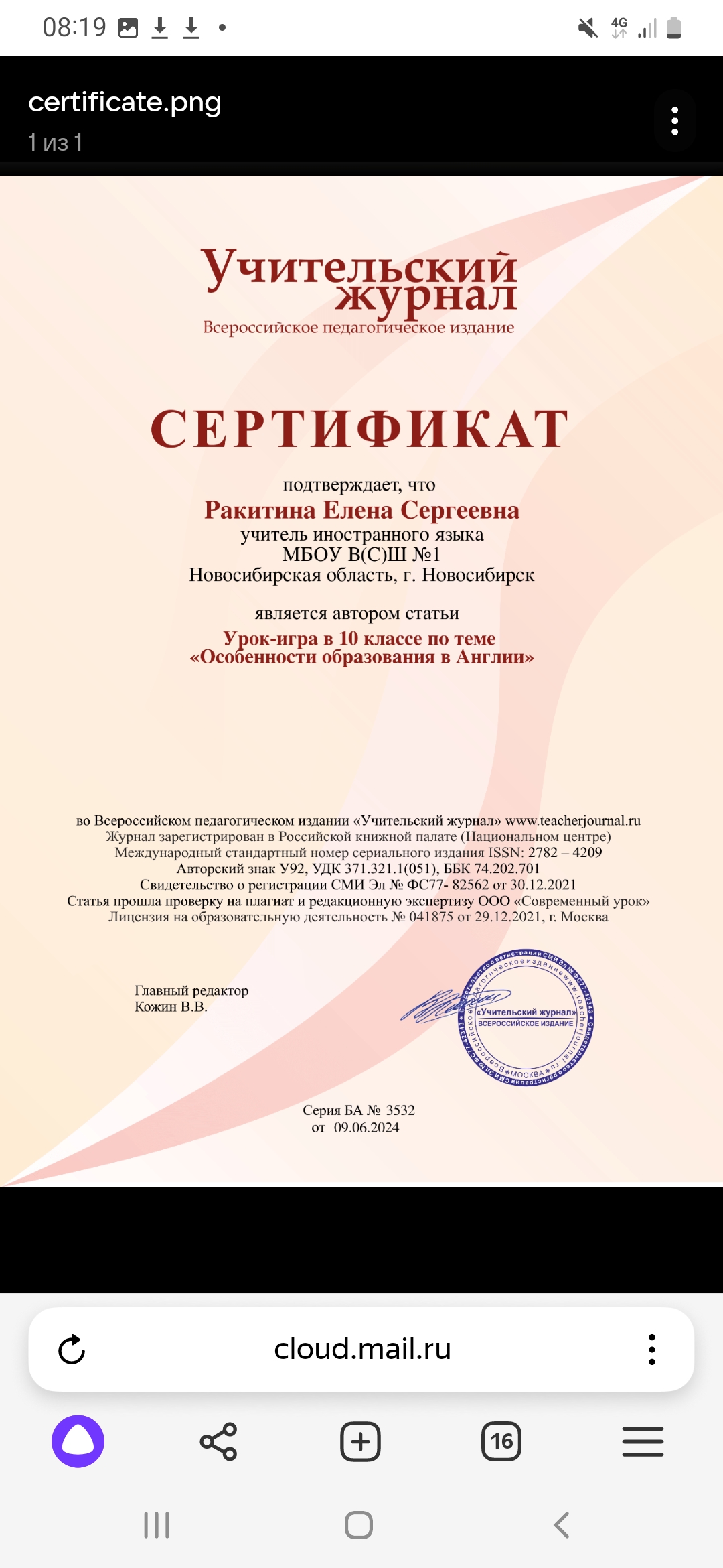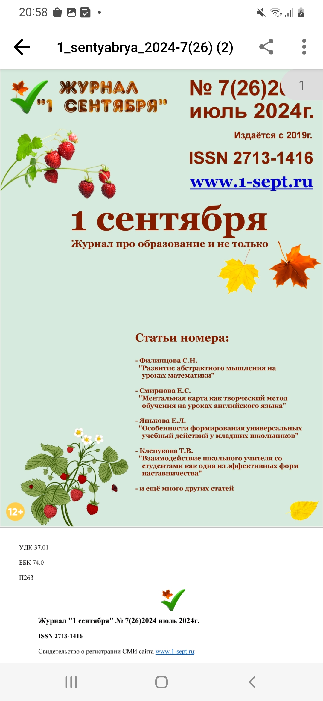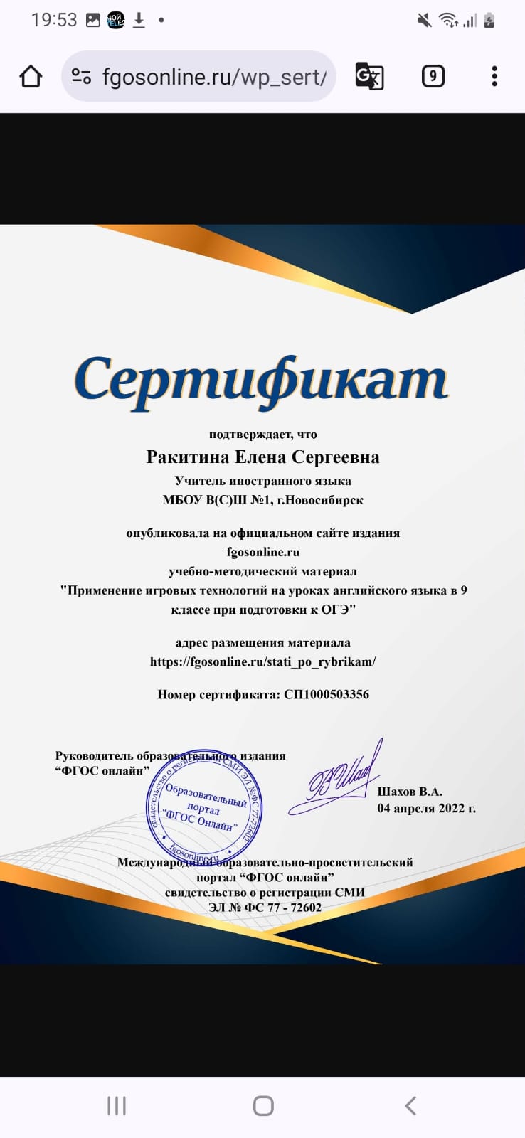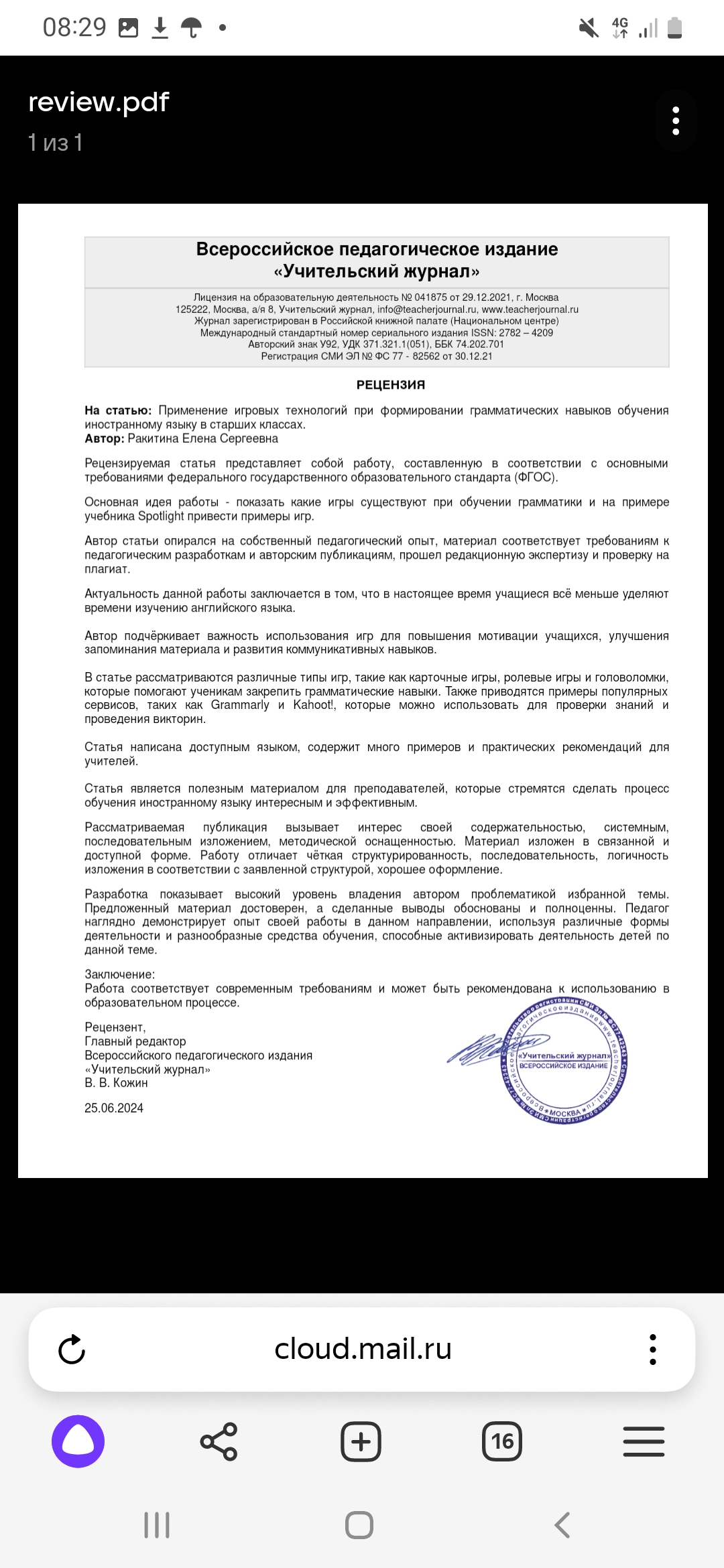 "Применение игровых технологий на уроках английского языка при формировании грамматических навыков обучении в старших классах": Публикация . Учительский журнал . - 2024.