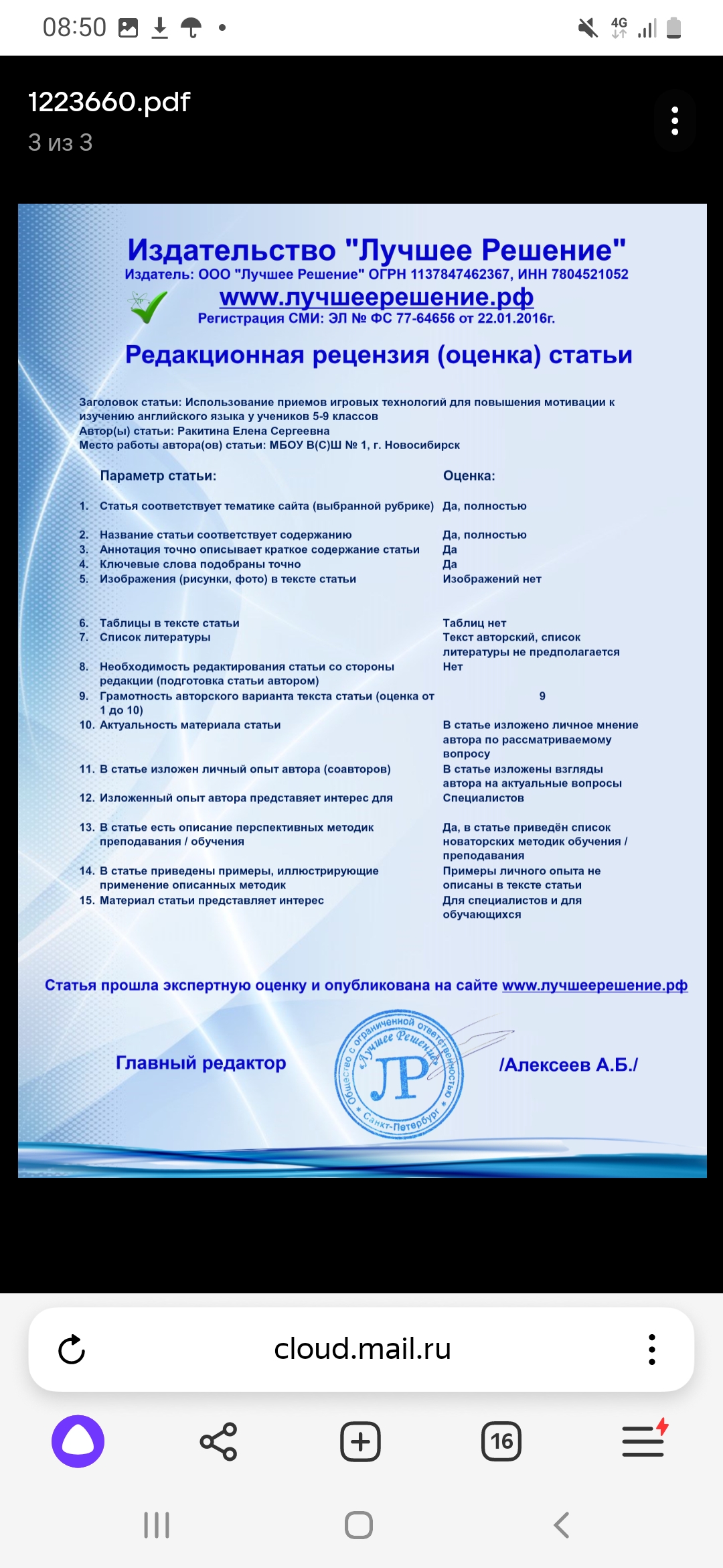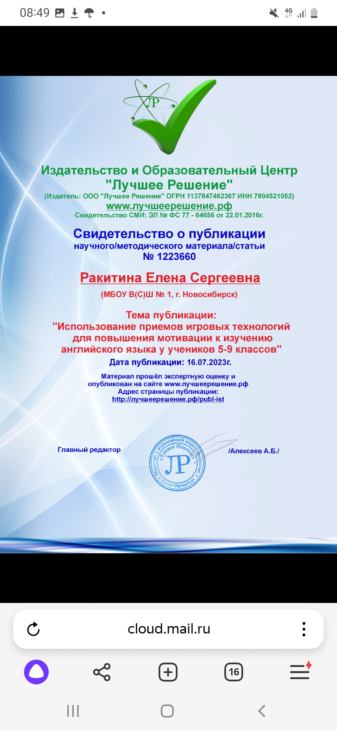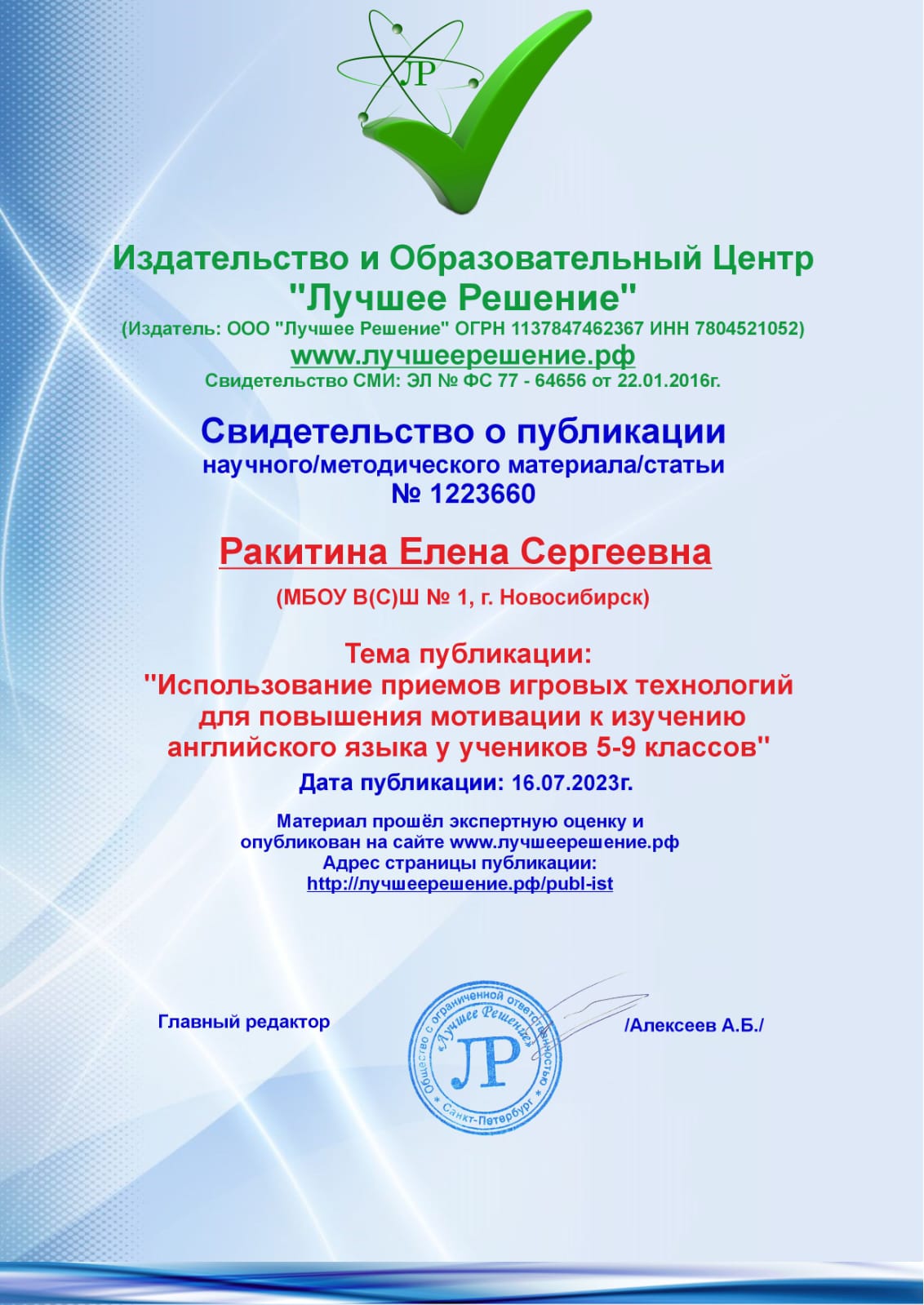 "Использование приёмов игровых технологий для повышения мотивации к изучению английского языка в 5-9 классах": Публикация . Лучшее решение сайт. - 2023.