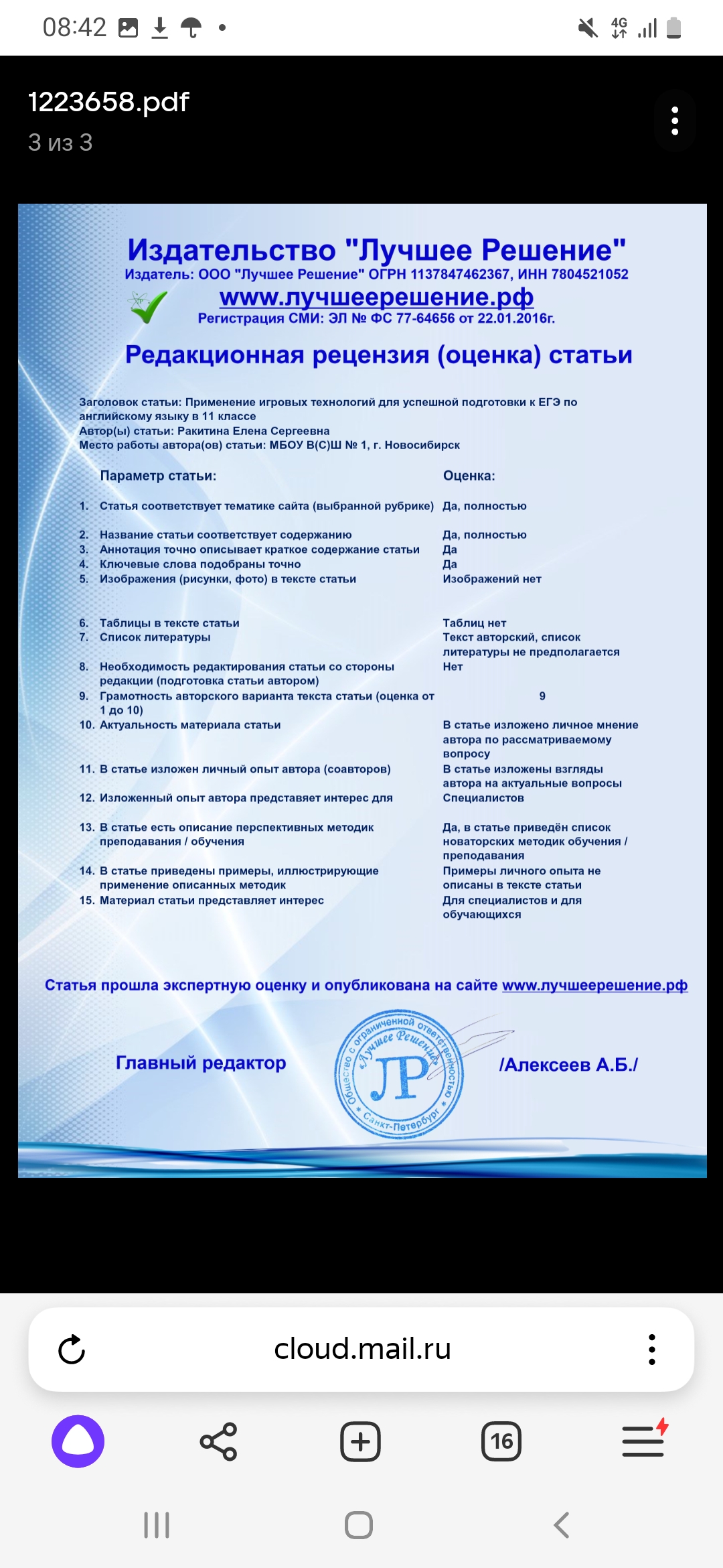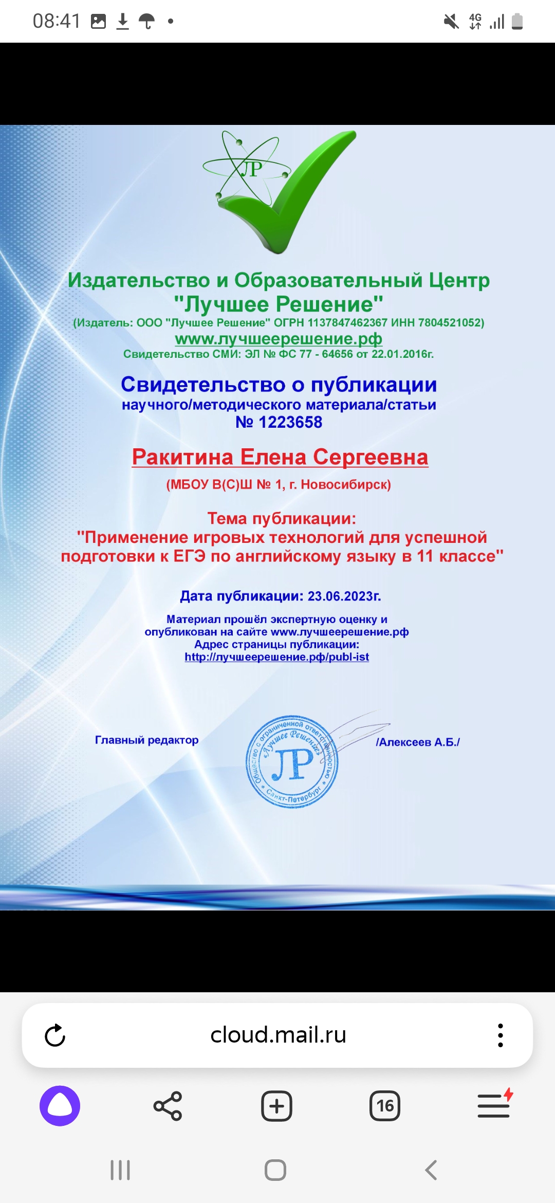 "Применение игровых технологий для успешной подготовки ЕГЭ по английскому языку в 11 классе": Публикация,авторская . Лучшее рещение. - 2023.